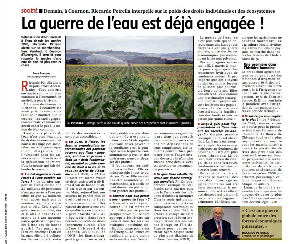 Dans son édition du 7 octobre 2021, le quotidien régional La Montagne publie page 9 deux articles au sujet des 2 journées des cours d’Eau d’ H2O Sans Frontières organisées au plan d’eau de Cournon d’Auvergne :